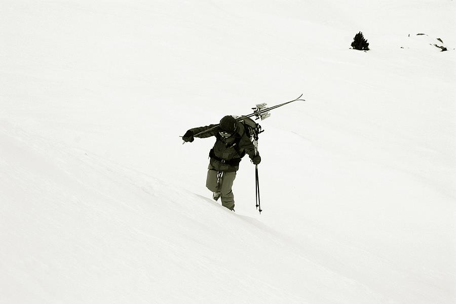 Y hoy, cambio de enfoque...día gris, sin mucha motivación. Una llamadita de Ricardo y ya está el lío montado. Esquís recién pasados por el taller de Boutique Nepal, y cacharrería no habitual en una estación de esquí...